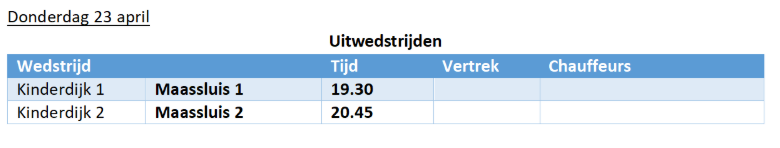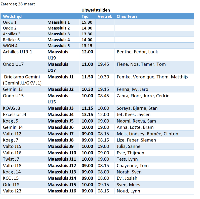 Voor de oefenwedstrijden van de jeugdteams hebben we chauffeurs ingedeeld.