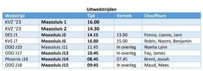 Voor de oefenwedstrijden hebben we bij de jeugd chauffeurs ingedeeld. Vertrek is voor alle teams vanaf de Olympiahal. Kan je niet spelen, dan graag afmelden bij de trainers/coaches en het wedstrijdsecretariaat.