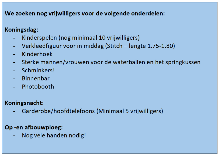We hebben al veel aanmeldingen ontvangen voor Koningsnacht en Koningsdag! Superleuk!